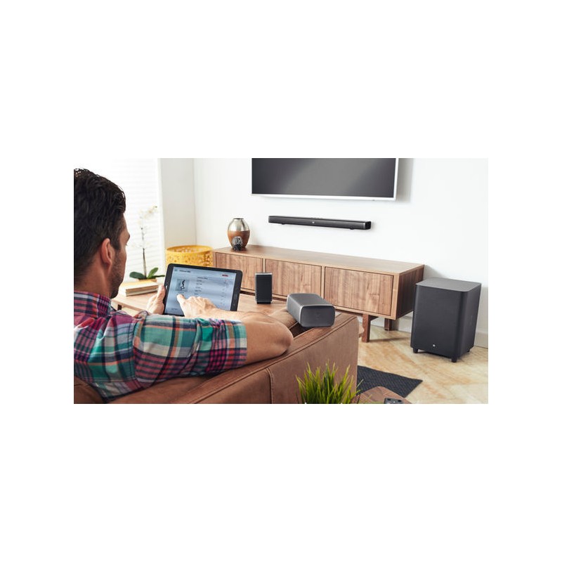 Con JBL Bar tendrá la mejor experiencia de película totalmente inalámbrica. La JBL Bar 5.1 se transforma de una barra de sonido en un verdadero sistema de cine en casa inalámbrico 5.1 para una película épica y la mejor experiencia para escuchar música.