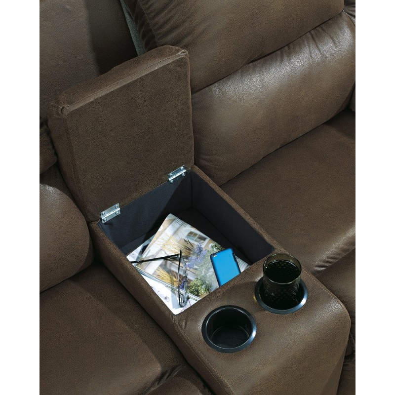 Ashley Furniture Quarterback Loveseat con Reclinable y Consola Café